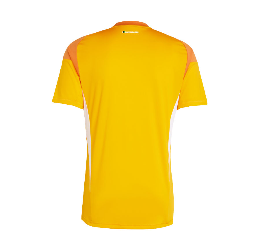Originale maglia Adidas in tessuto Aeroready, sulla manica destra spiccano logo della Lega Nazionale Dilettanti serie D e grafica stilizzata di tre elementi architettonici rappresentativi della città di Castellanza (il campanile chiesa di S. Giulio, arco settecentesco dei platani e ciminiera ex cotonificio Cantoni). Sul retro della maglia la scritta Castellanzese è uno degli elementi di novità delle nuove divise da gara. In evidenza sul petto lato cuore l’immancabile logo USD Castellanzese 1921 .